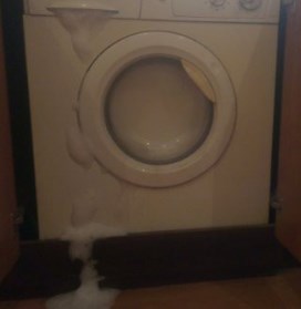 Вы решили проверить, как поживает ваша стиральная машинка, мерно стирающая белье, и вдруг обнаружили дома мыльное шоу: чудесные мыльные пузыри, место которым внутри стиралки, каким-то непостижимым образом вырвались наружу! И из стиральной машины лезет пена. Что же делать со всем эти «праздничным» богатством?